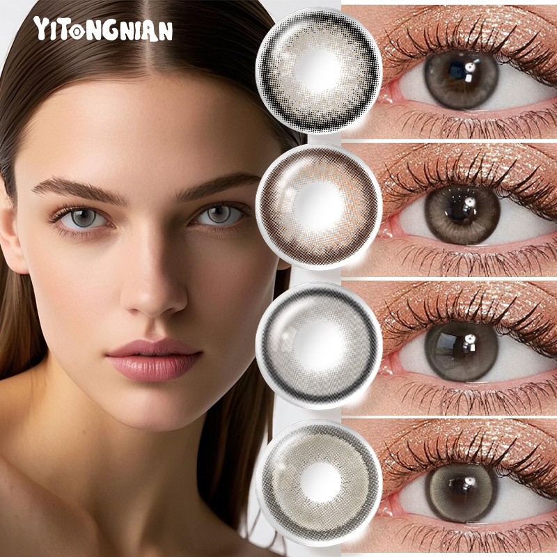 YI TONG NIAN, precio de fábrica, lentes de contacto de belleza azules personalizados, lentes de contacto de color negro envasados suaves para venta al por mayor