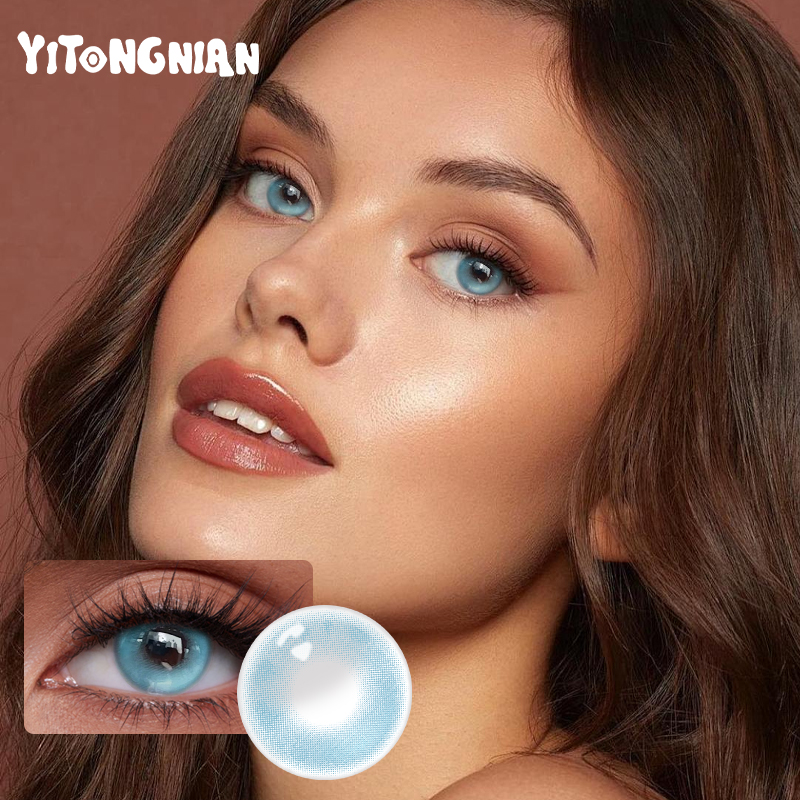 YI TONG NIAN Preço De Fábrica Personalizado Azul Beleza Lentes De Contato Macio Embalado Preto Colorido Lentes De Contato para Atacado