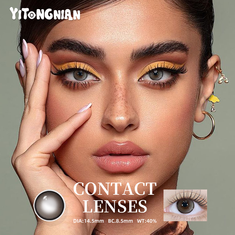 YI TONG NIAN fabrika fiyat özelleştirilmiş mavi güzellik kontakt lensler yumuşak paketlenmiş siyah renkli kontakt lensler toptan için